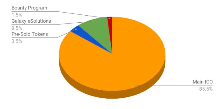 Galaxy eSolutions ищет средства не только для развития децентрализованных рынков и токенов, но и для стремительного роста на рынке. Имея подходящую возможность, время и партнерство, Galaxy eSolutions готовы к реализации задуманного. Основные параметры ICO представлены ниже: